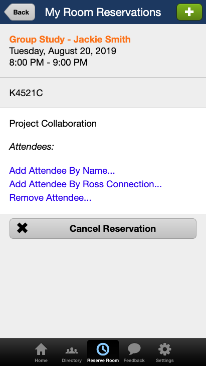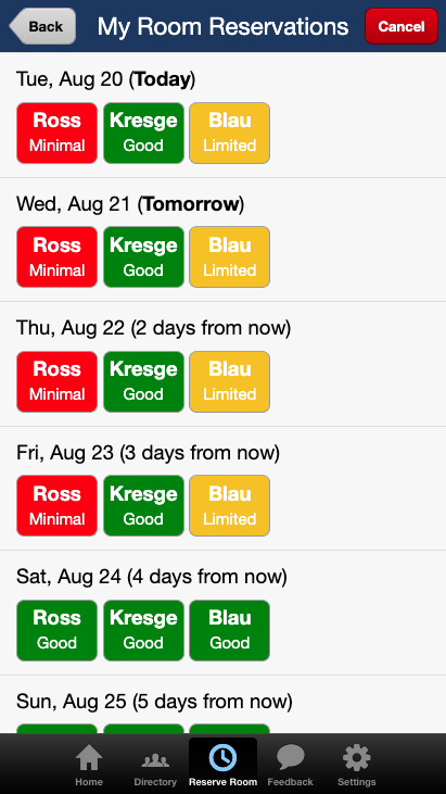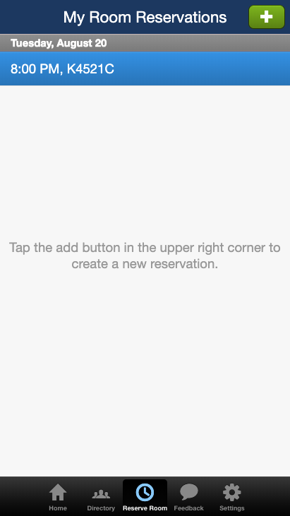 Use "My Room Reservations" to see your existing reservations and reserve future rooms.