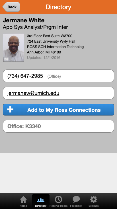 Do you need to reserve a study room quickly while on the go, or find your fellow classmates in the Ross Directory? The new iMpact GO! web app brings you quick and easy tools to manage your room reservations and connect with other members of the Ross community while on the go.