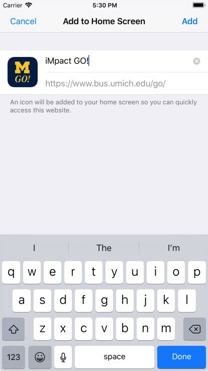 For quick access to iMpact GO! add a shortcut to your mobile device's home screen